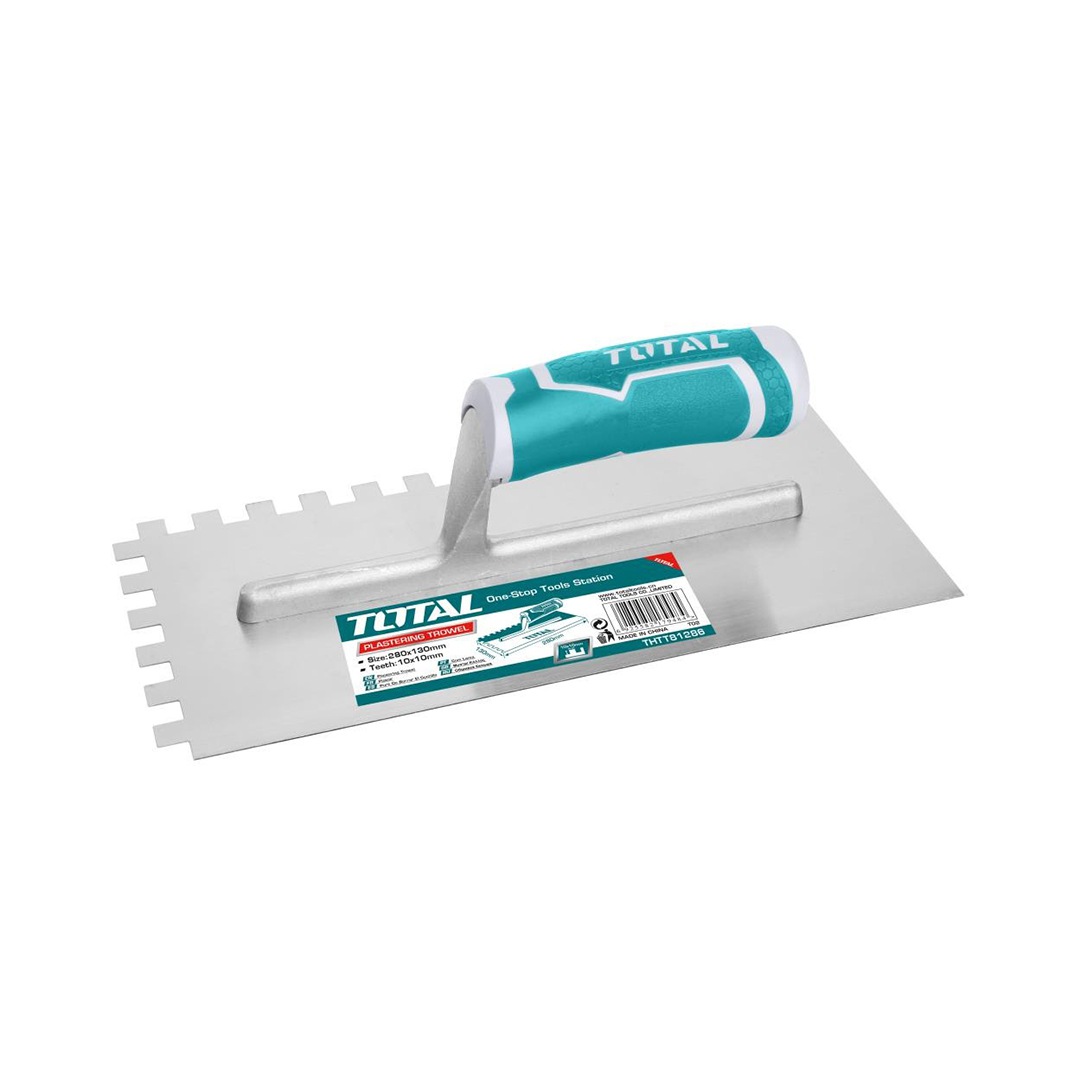 11″X5″ Plastering trowel with teeth “Size:280x130mm Teeth:10*10mm TOTAL unique design handle Slight bow in blade good for working Packed by label”