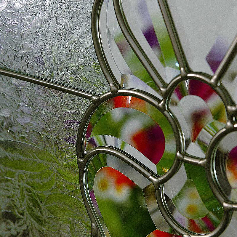 The value you place on history makes Heirlooms your perfect choice. Its deeply cut beveled glass and satin nickel finish create a Classic design that endures, just like the family treasures that lie within your home. Heirlooms offers a medium privacy level. Available with Satin Nickel caming.